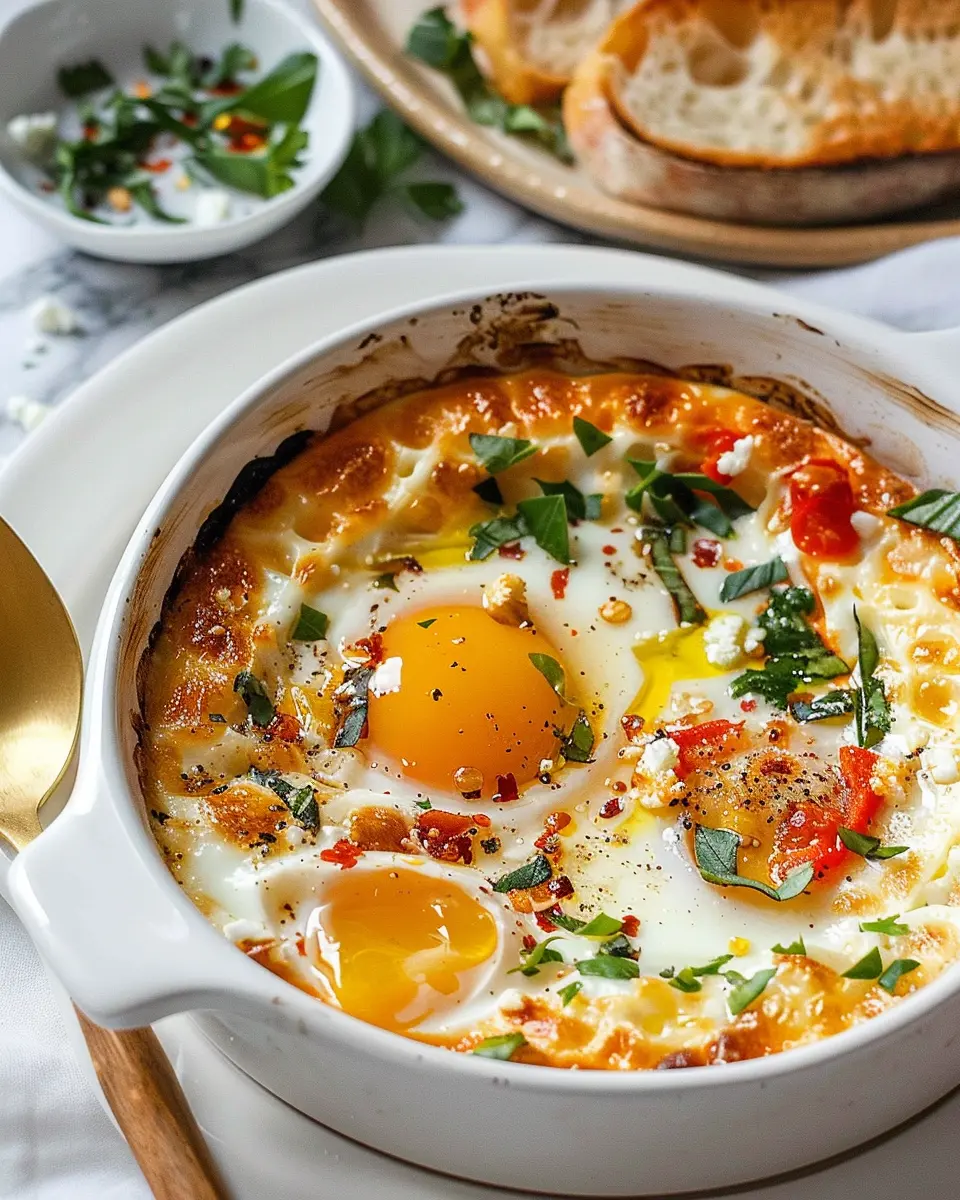 Nutrient-Packed Goodness: Baked feta eggs deliver a satisfying blend of protein and healthy fats. Feta cheese is not only flavorful but also contains calcium and phosphorus, essential for maintaining strong bones. Eggs provide a powerhouse of vitamins and minerals, making this meal a nutritious choice that keeps you energized throughout your day.