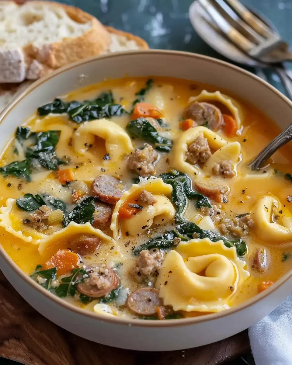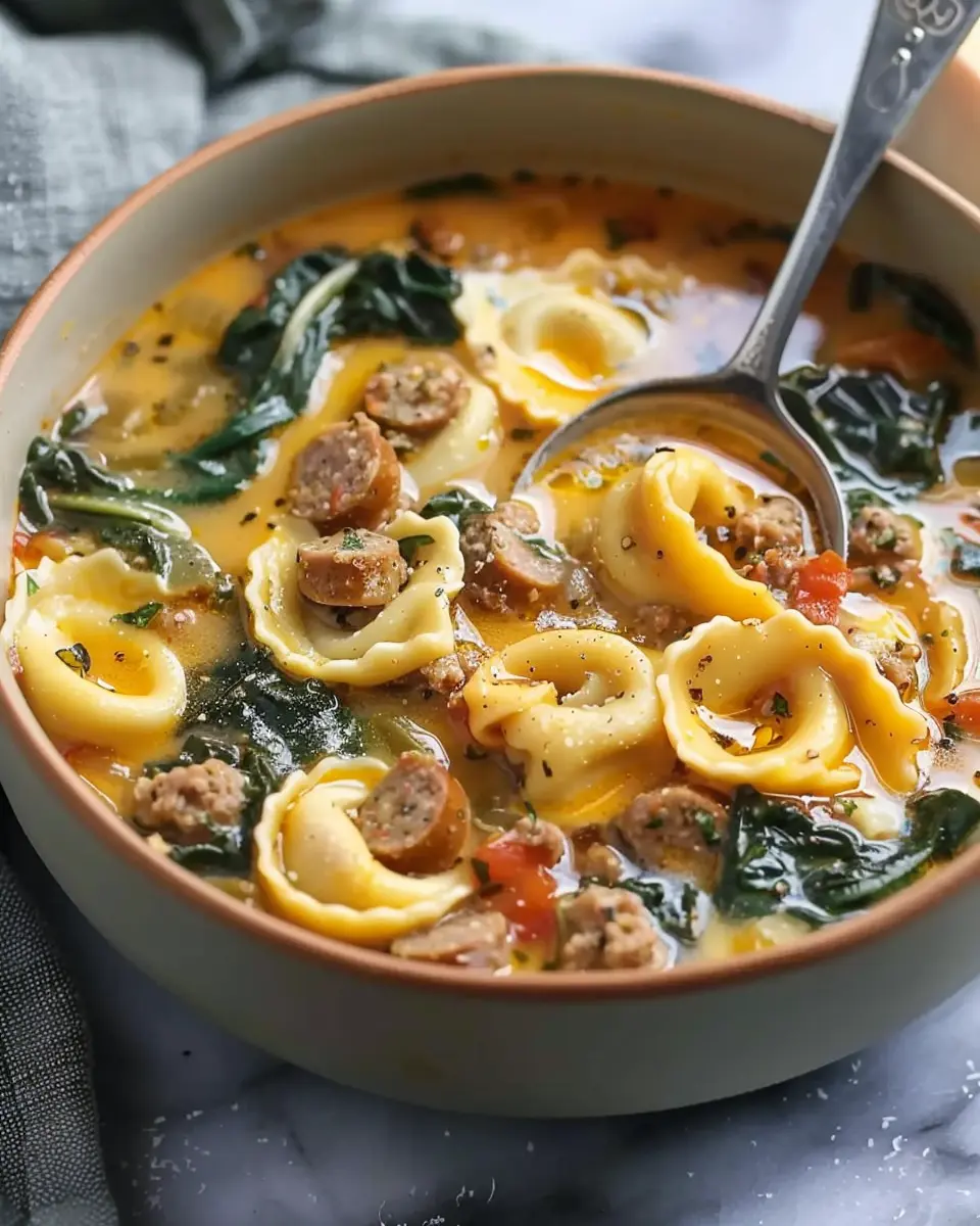 A delicious and cozy soup featuring butternut squash, sausage, and tortellini, perfect for chilly days.