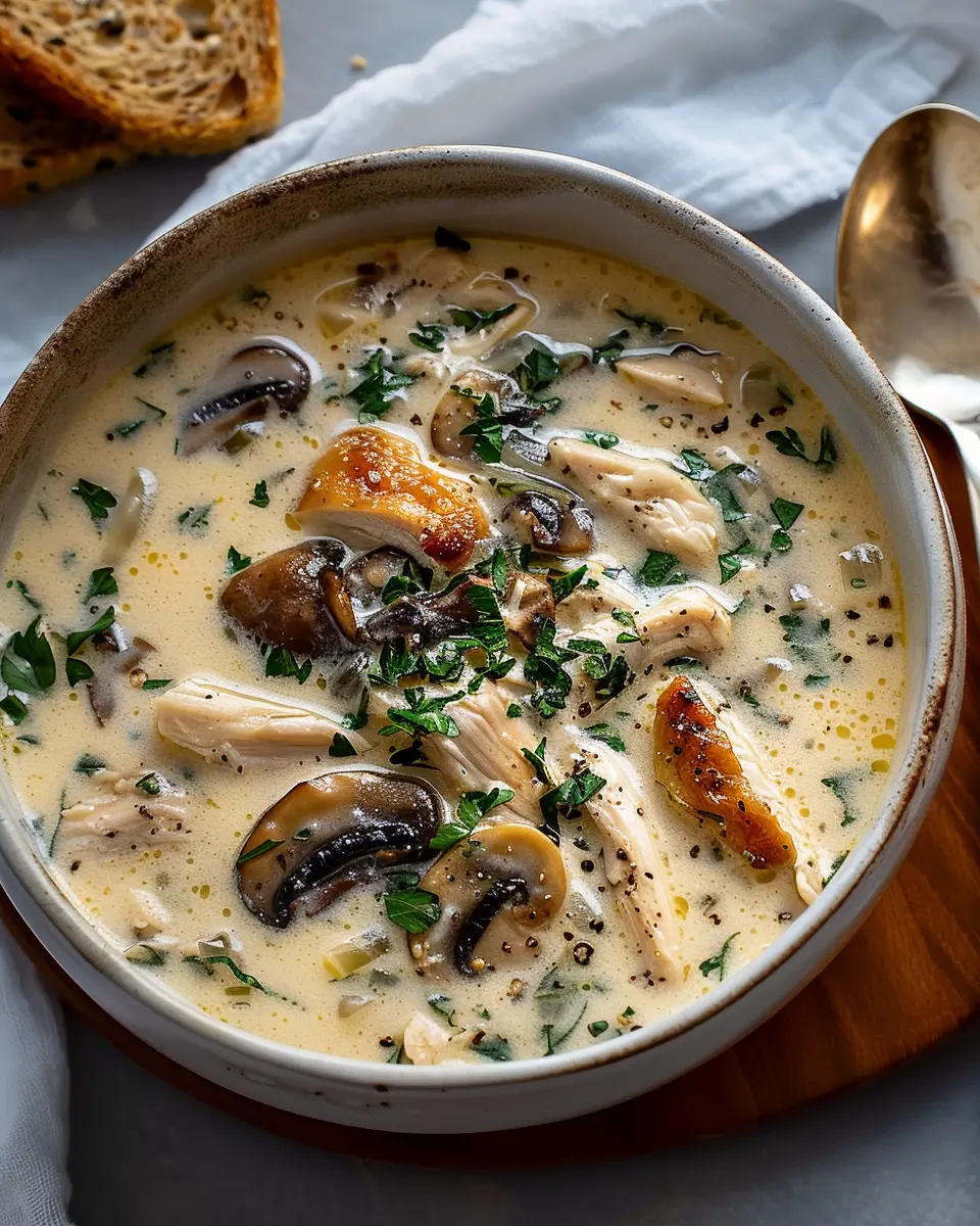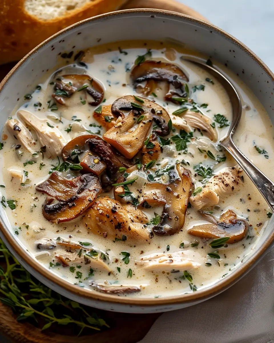 PrintCreamy Rotisserie Chicken Mushroom Soup: A Comforting Delight