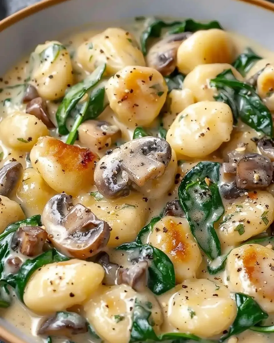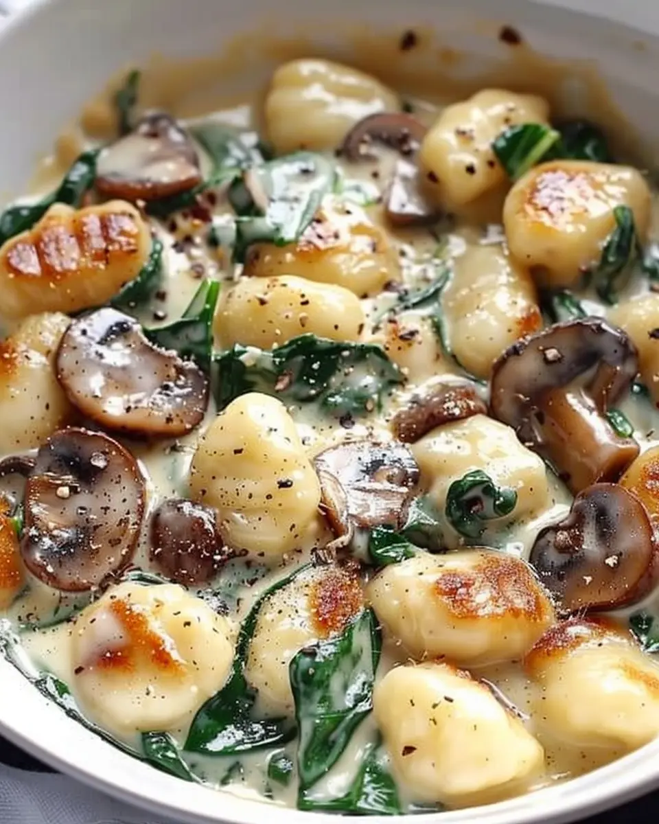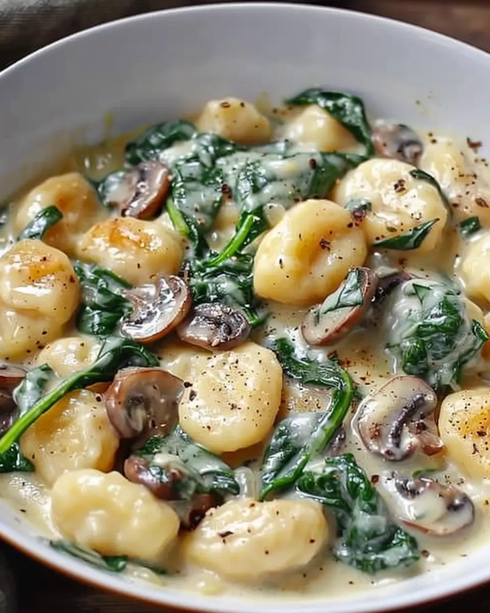 PrintCreamy Spinach Mushroom Gnocchi: A Simple Indulgence Recipe
