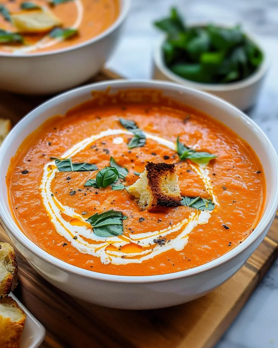 Garnishes are an easy way to elevate your creamy tomato bisque presentation. Here are some tasty options: