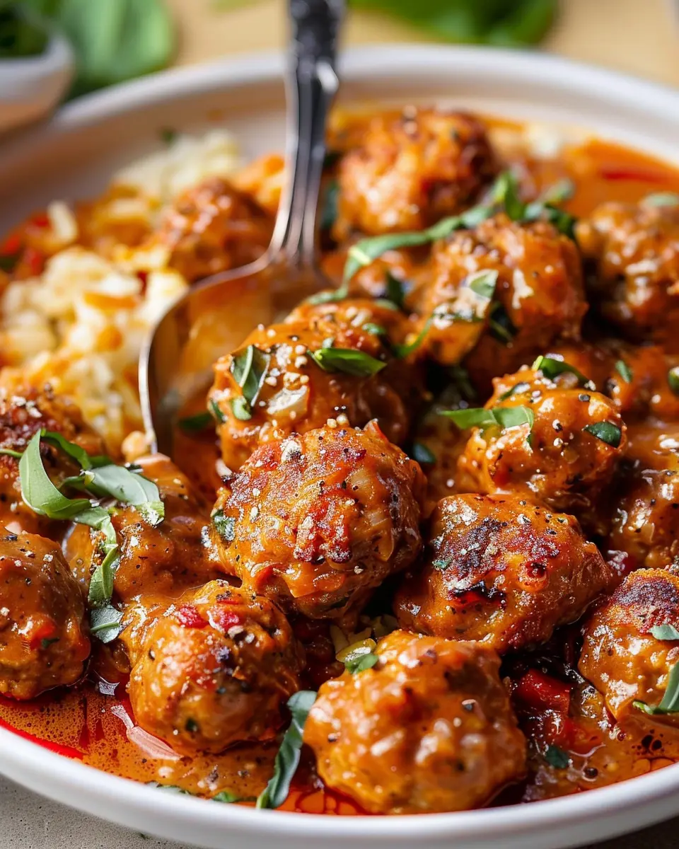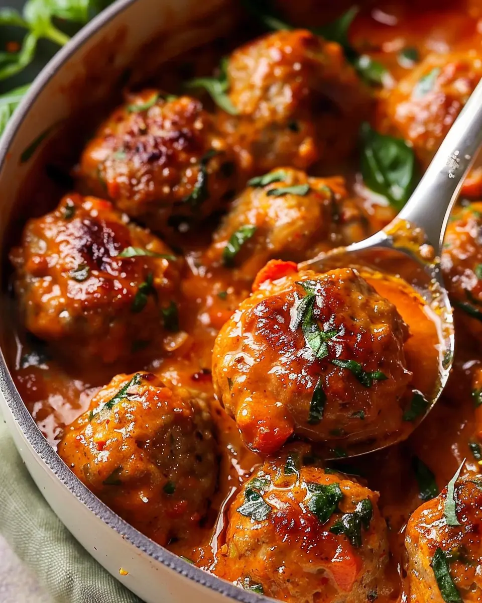 Once your meatballs are fully cooked, transfer them into the sun-dried tomato cream sauce. Gently toss them until they’re coated in the rich, creamy goodness. Allow the meatballs to simmer together for about 5–10 minutes, letting the flavors meld beautifully.