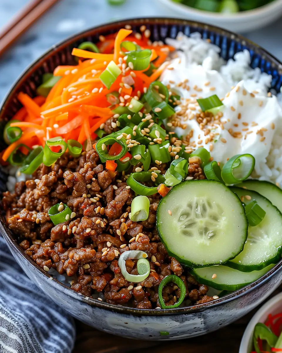 A quick and easy recipe for a delicious Korean Ground Beef Bowl that can be prepared at home.