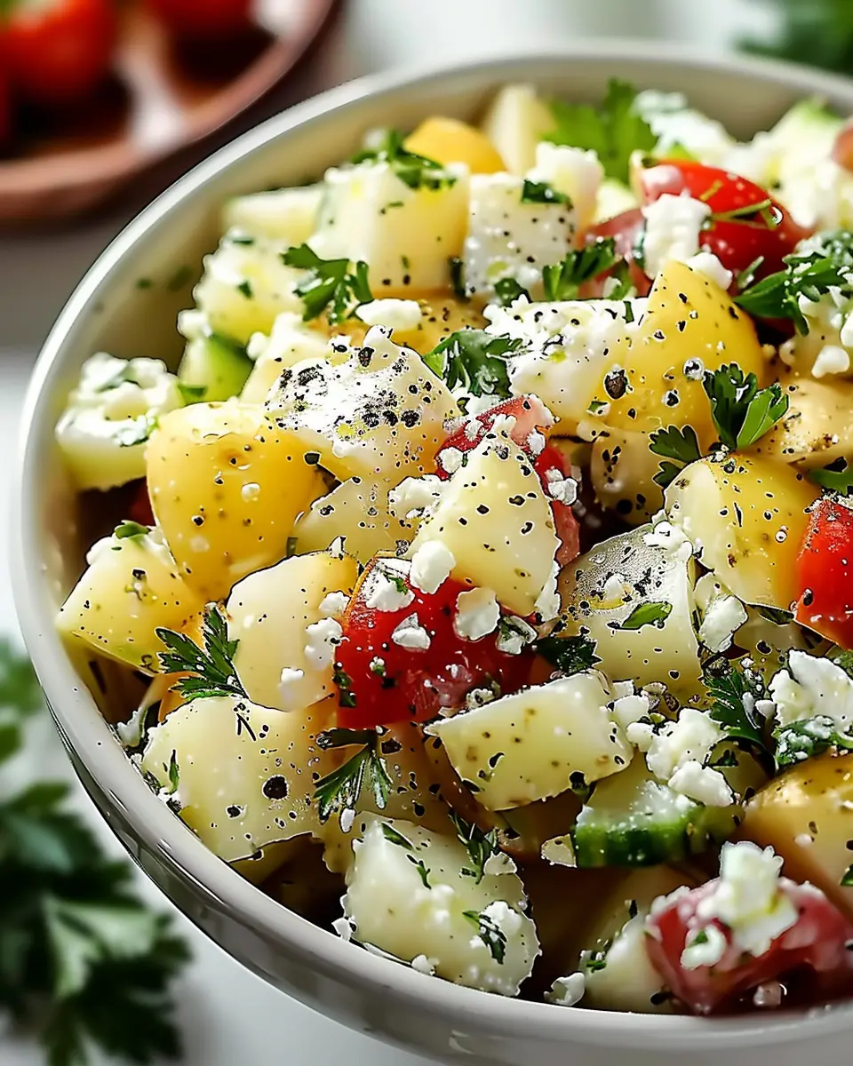 If you’re looking to whip up a vegan version of Turkish Potato Salad, replacing the feta cheese is a breeze! Nutritional yeast provides that cheesy flavor while being entirely plant-based. You might also add avocado for creaminess or even a dollop of tahini mixed with lemon juice—both options complement the dish beautifully.
